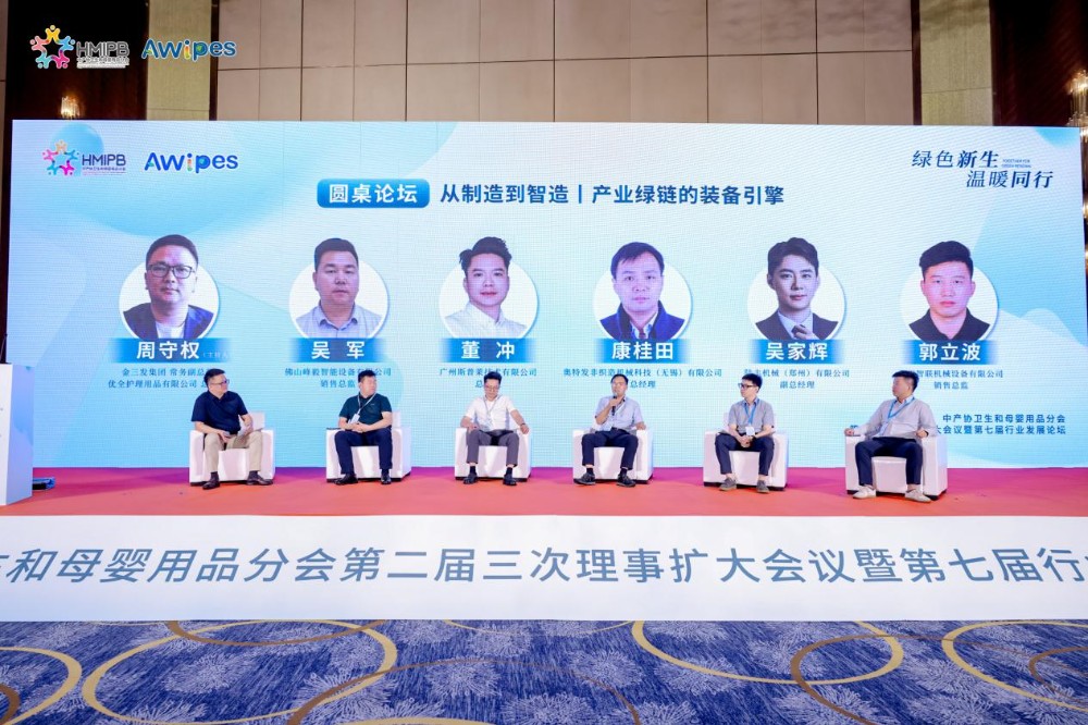 Zhou Shouquan, wakil presiden eksekutif Jinsanfa Group dan manajer umum Youquan Care Products Co., Ltd., memimpin diskusi tema "Dari Manufaktur ke Manufaktur Cerdas丨Mesin Peralatan Rantai Ramah Lingkungan Industri". Kang Guitian, General Manager Autofa Nonwoven Machinery Technology (Wuxi) Co., Ltd., Dong Chong, General Manager Guangzhou Spley Technology Co., Ltd., Guo Libo, Direktur Penjualan Zhengzhou Zhilian Machinery and Equipment Co., Ltd., Wu Jun, Direktur Penjualan Foshan Fengyi Intelligent Equipment Co., Ltd., Wu Jiahui, Deputy General Manager Lufeng Machinery (Zhengzhou) Co., Ltd., dan perwakilan lainnya di bidang peralatan khusus di bidang kebersihan dan industri produk ibu dan bayi berbagi teknologi peralihan bebas tisu basah, seluruh lini handuk lembut, manufaktur cerdas dan layanan teknis, jalur produksi tak berawak, dan gramatur rendah, Perkembangan terkini dalam jalur produksi udara panas yang lebar, halus, dan berkecepatan tinggi.
