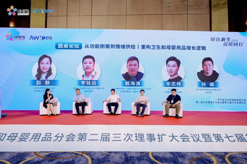 Zhao Jing, wakil presiden eksekutif dan sekretaris jenderal Asosiasi Produk Kehamilan, Bayi dan Anak-anak Jiangsu, memimpin diskusi tema "Dari Permintaan Kaku Fungsional ke Pasokan Emosional丨Merekonstruksi Logika Pertumbuhan Produk Kebersihan dan Ibu dan Bayi". Perwakilan dari serat khusus dan merek produk kebersihan serta produk ibu dan bayi, seperti Xie Haitao, direktur pembelian strategis senior Babycare, Ma Chuncheng, direktur penjualan Tangshan Sanyou Group Xingda Chemical Fiber Co., Ltd., dan Sun Feng, manajer umum Shandong Zhuobi Maternal and Infant Products Co., Ltd., berbagi pengalaman interaktif, kesehatan dan kenyamanan, perlindungan lingkungan hijau, keunggulan fungsional, dan kinerja biaya.